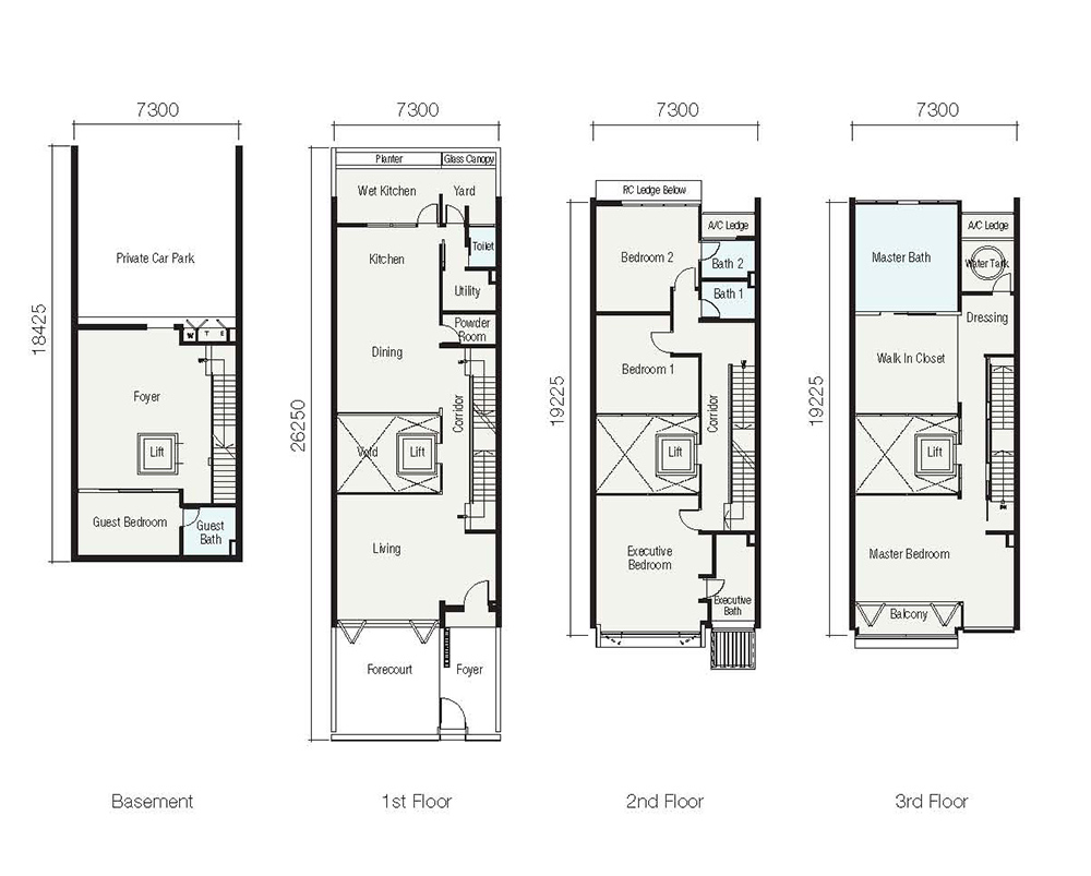 - ¼¼´ë¸éÀû 4,422ft2 (124Æò) ~ 5,488ft2 (154Æò)